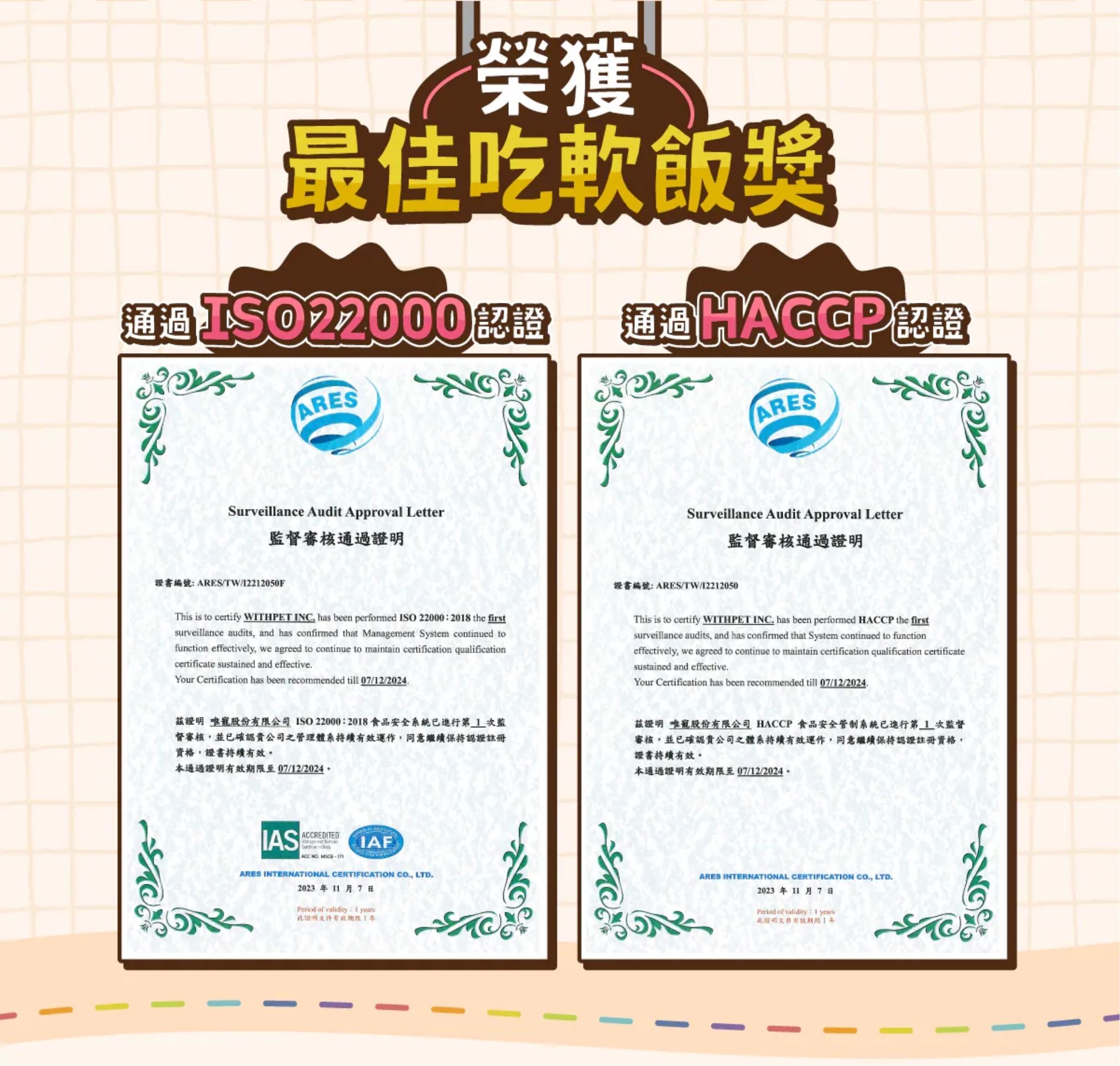 ✅ 生產通過 HACCP & ISO22000 認證